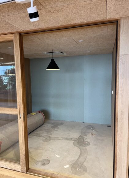 The combination of materials and thoughtful acoustic principles fosters an atmosphere that is both calm and engaging. Every element was selected to create a sense of comfort, texture, and connection to nature, making the workspace feel more like a residential retreat than a conventional office.